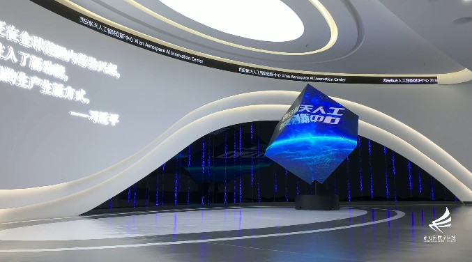 高瞻的眼光,宏觀的視角為人工智能發(fā)展注入信心,形象墻正中設(shè)置動(dòng)感魔方,既是實(shí)力的聚集,亦是能量的釋放,傳達(dá)科技、多變、無(wú)限的寓意。